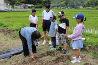 防災プログラム午前の部の後半は、入野海岸へ行きました。海岸に流れ着いた物や波の高さを観察したりしました。